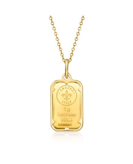 Ross-Simons Italian 24kt Yellow Gold 1-Gram Ingot Pendant Necklace With 14kt Yellow Gold Frame