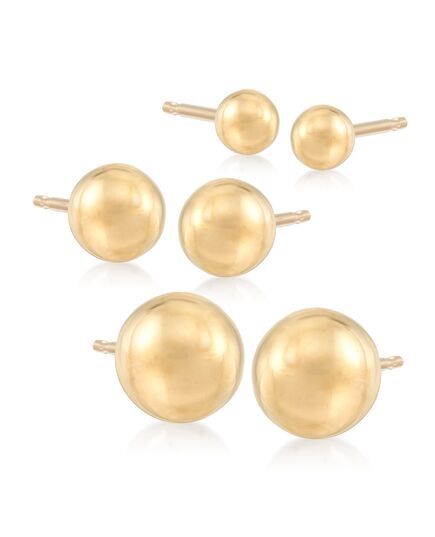 Ross-Simons Italian 4-8mm 18kt Yellow Gold Ball Stud Jewelry Set: 3 Pairs Of Earrings