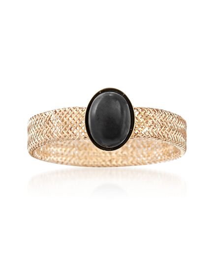 Ross-Simons Italian Black Onyx Mesh Stretch Ring in 14kt Yellow Gold