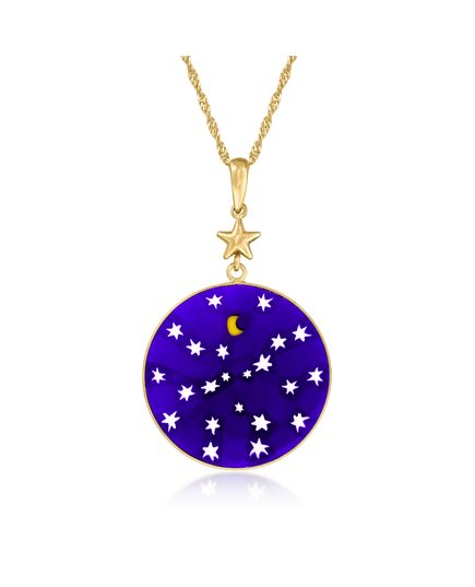 Ross-Simons Italian Blue Murano Glass Stars and Moon Pendant Necklace in 18kt Gold Over Sterling