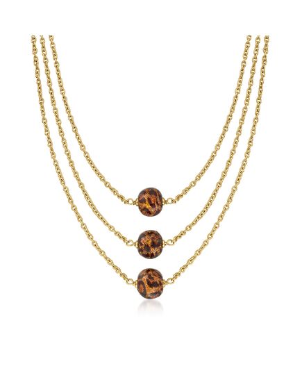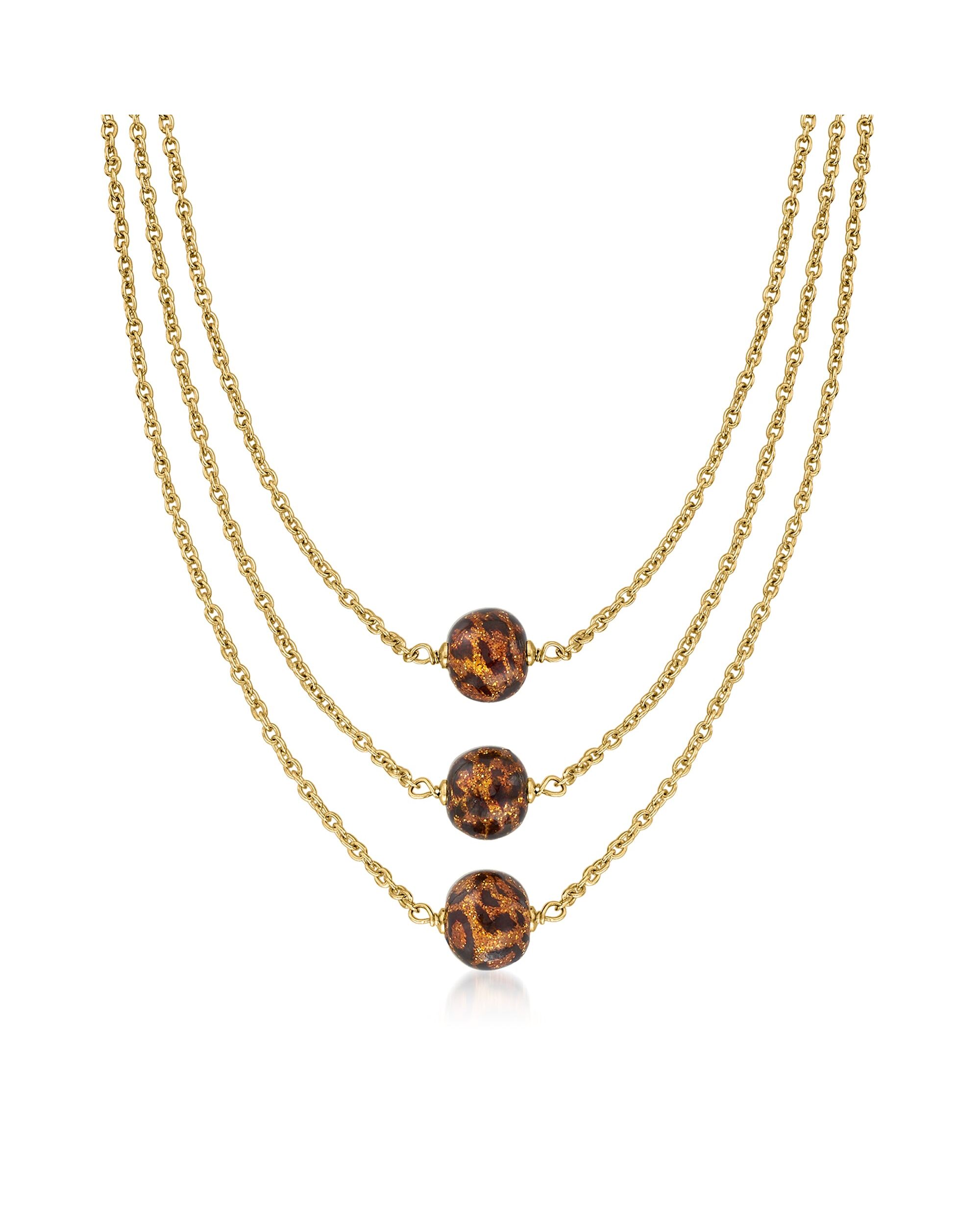 Ross-Simons Italian Leopard-Print Murano Glass Multi-Strand Necklace in 18kt Gold Over Sterling