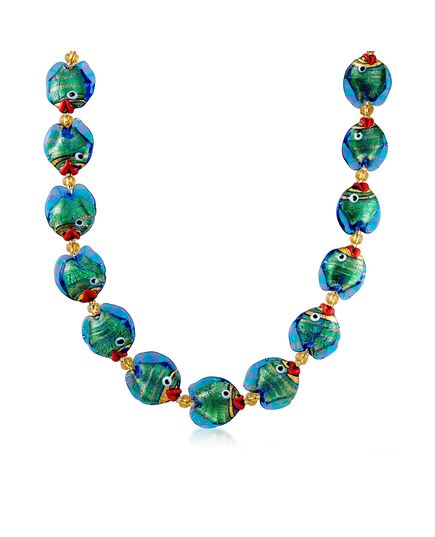 Ross-Simons Italian Multicolored Murano Glass Fish Necklace With 18kt Gold Over Sterling