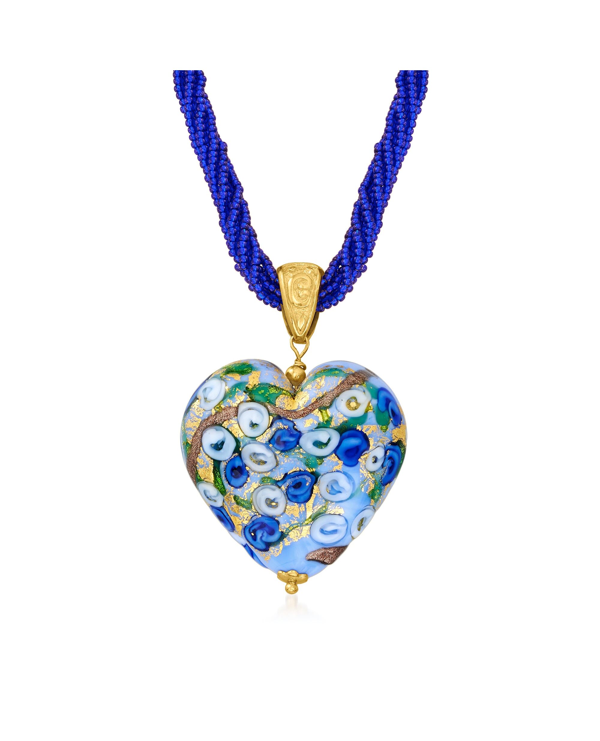 Ross-Simons Italian Multicolored Murano Heart Pendant Necklace in 18kt Gold Over Sterling