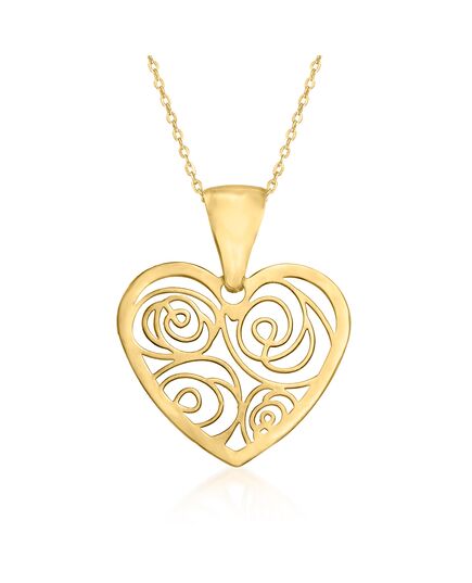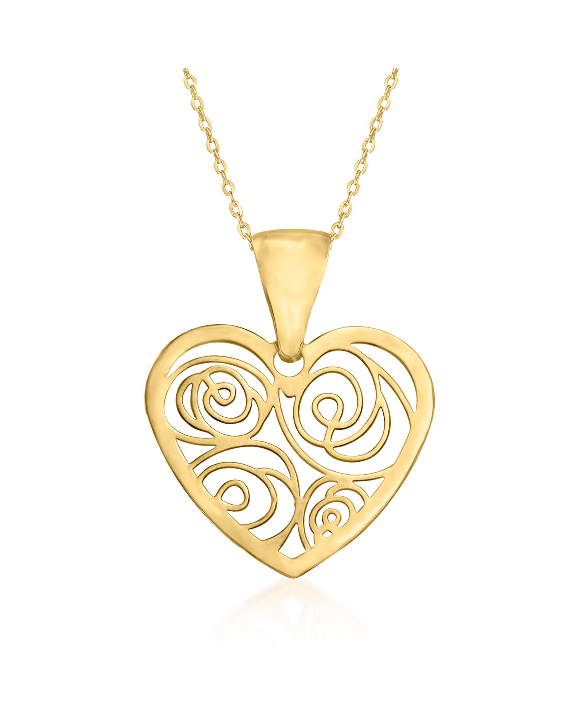 Ross-Simons Italian Openwork Heart Pendant Necklace in 14kt Yellow Gold