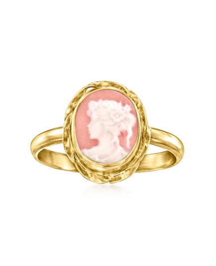 Ross-Simons Italian Pink Porcelain Cameo Ring in 18kt Gold Over Sterling