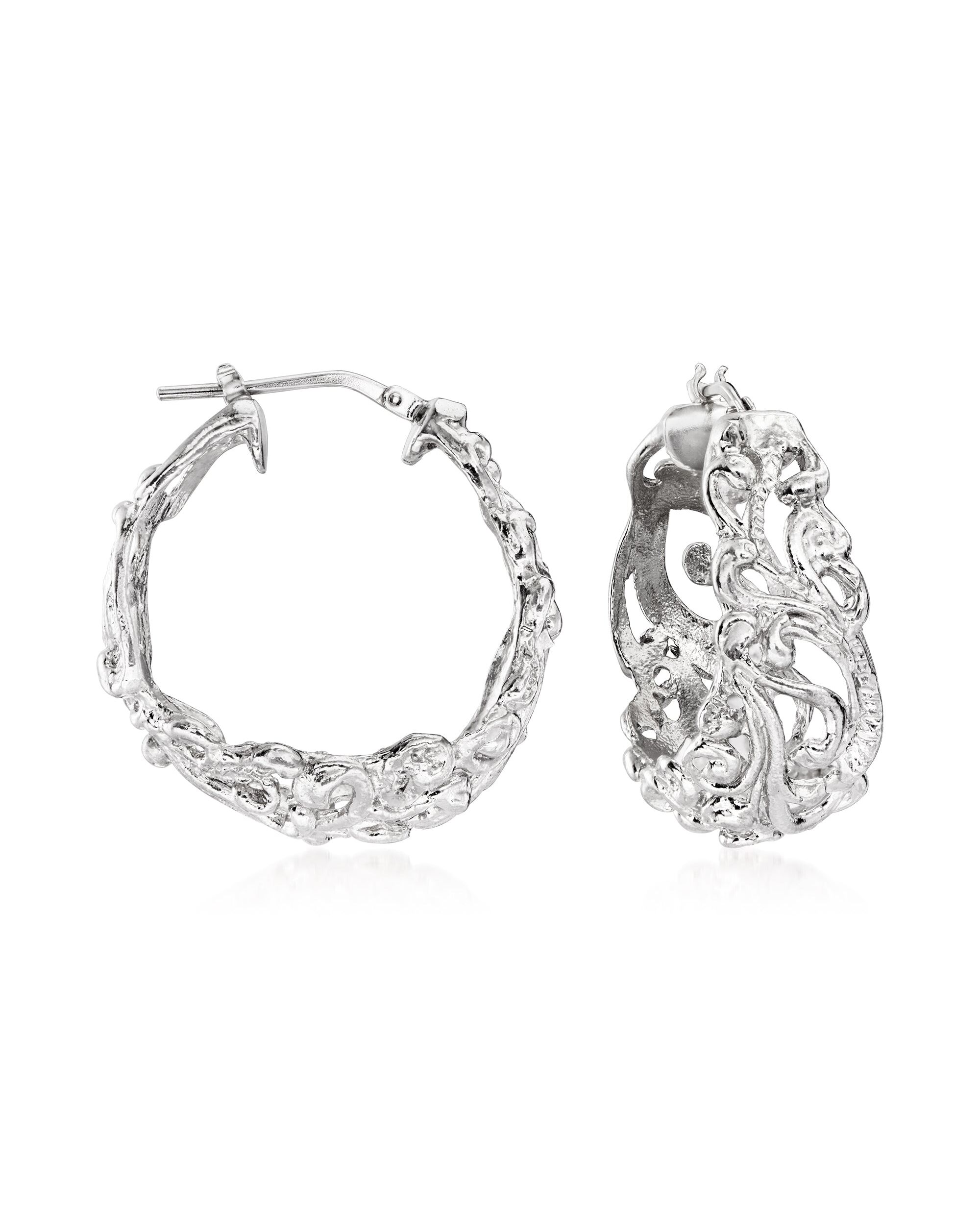 Ross-Simons Italian Sterling Silver Florentine Hoop Earrings