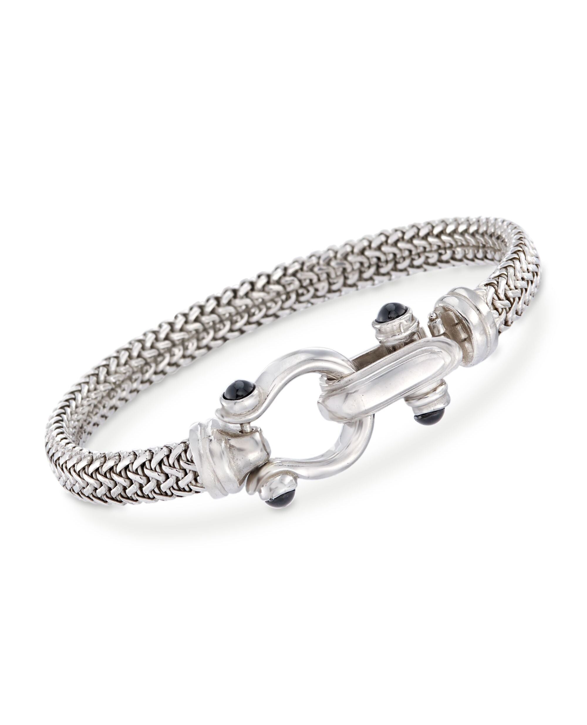 Ross-Simons Italian Sterling Silver Horsebit Bracelet With Black Onyx