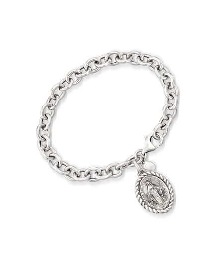 Ross-Simons Italian Sterling Silver Miraculous Medal Charm Bracelet