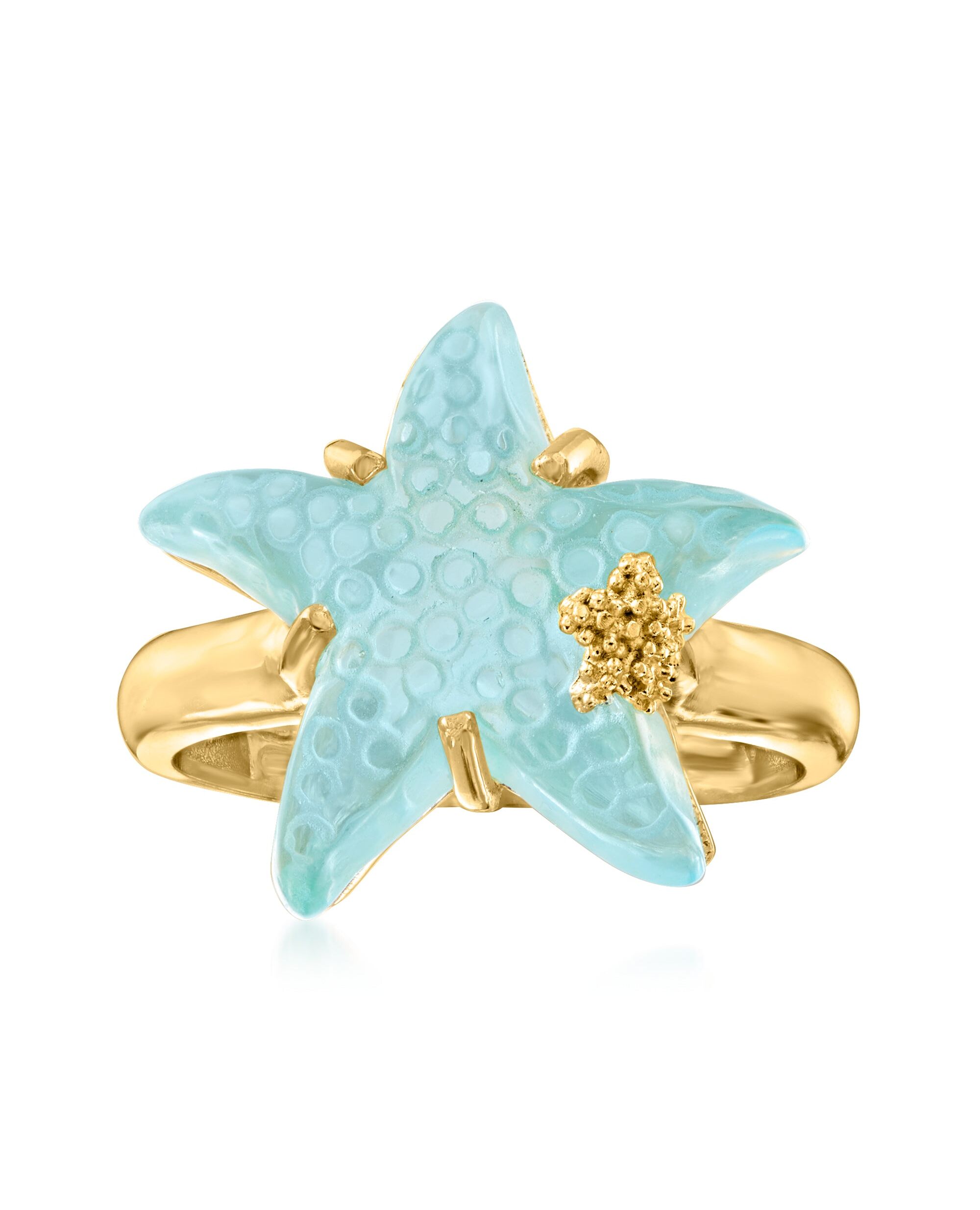 Ross-Simons Italian Tagliamonte 16mm Blue Venetian Glass Starfish Ring in 18kt Gold Over Sterling