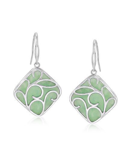 Ross-Simons Jade Drop Earrings in Sterling Silver