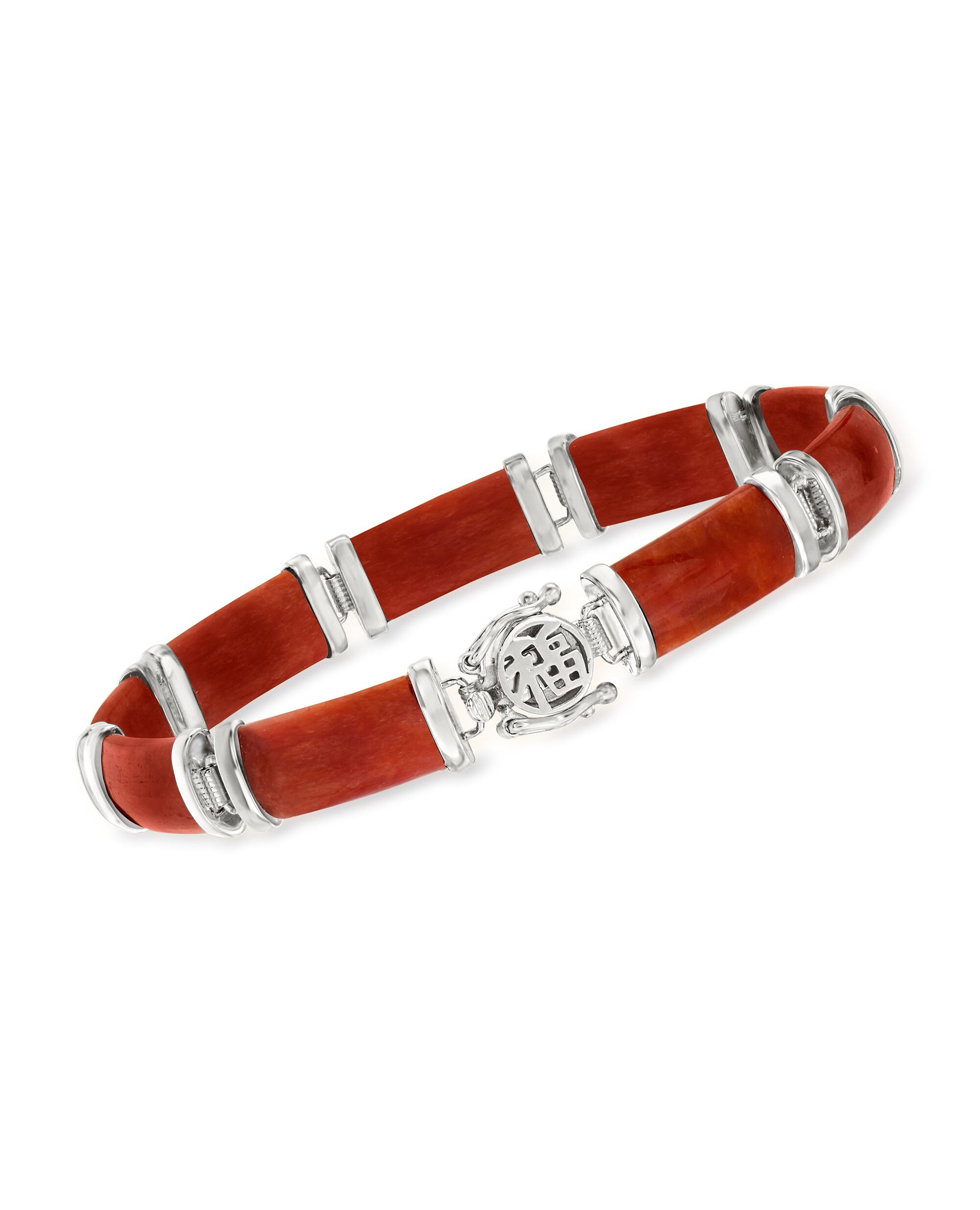 Ross-Simons Jade "Good Fortune" Bracelet in Sterling Silver