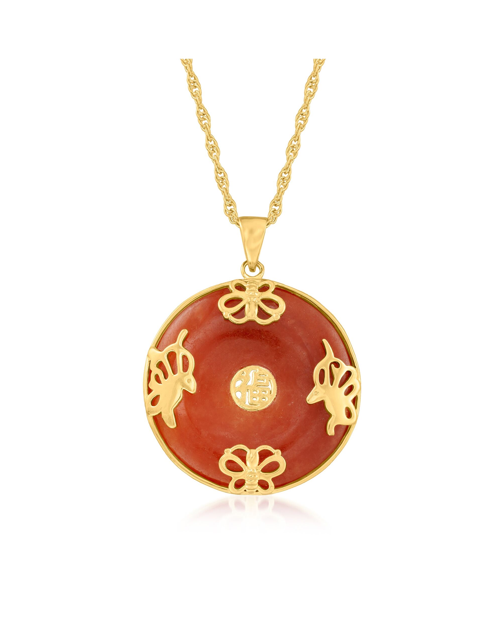 Ross-Simons Jade "Good Fortune" Butterfly Pendant Necklace in 18kt Gold Over Sterling