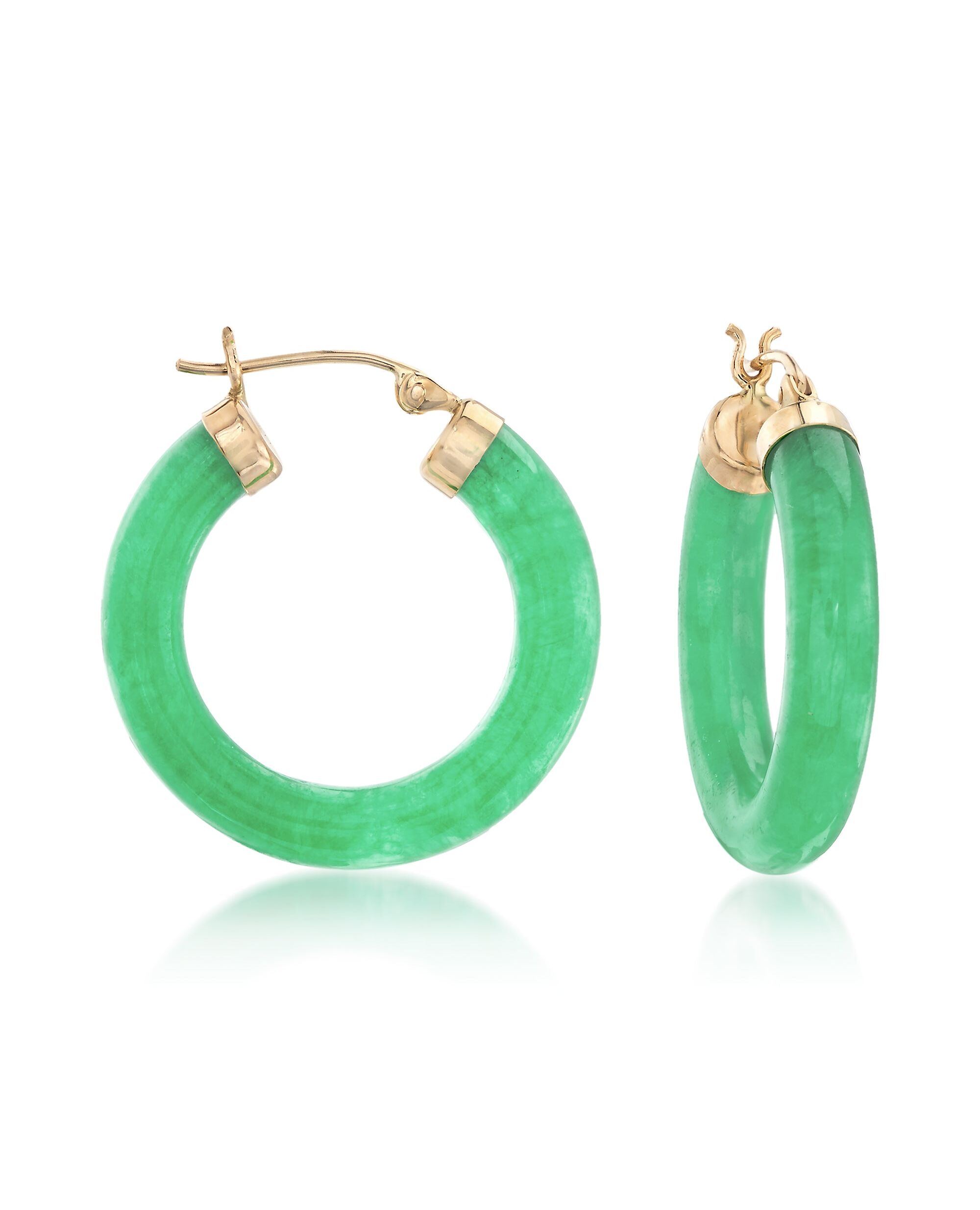 Ross-Simons Jade Hoop Earrings With 14kt Yellow Gold