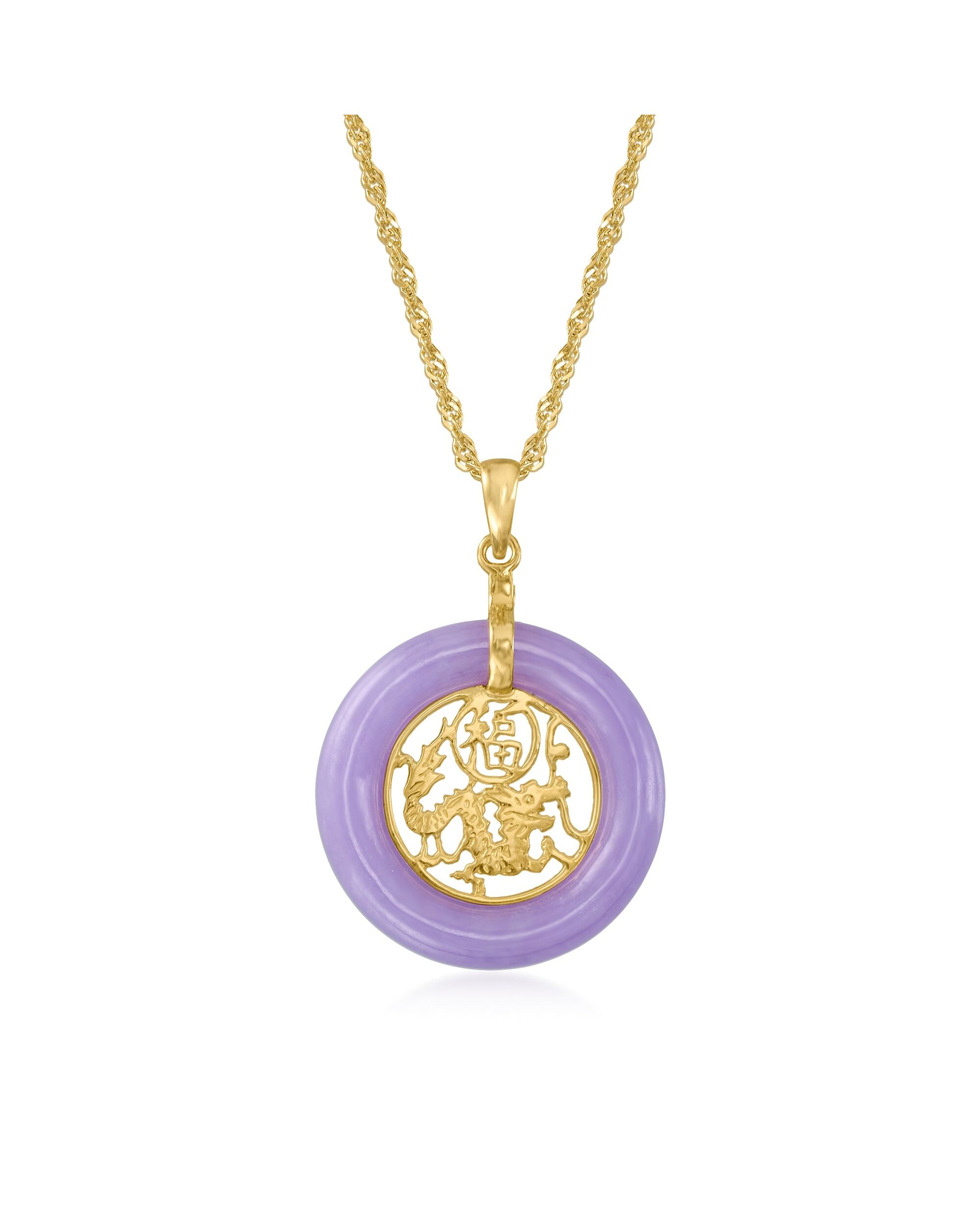 Ross-Simons Lavender Jade "Good Fortune" Chinese Symbol Circle Pendant Necklace in 18kt Gold Over Sterling