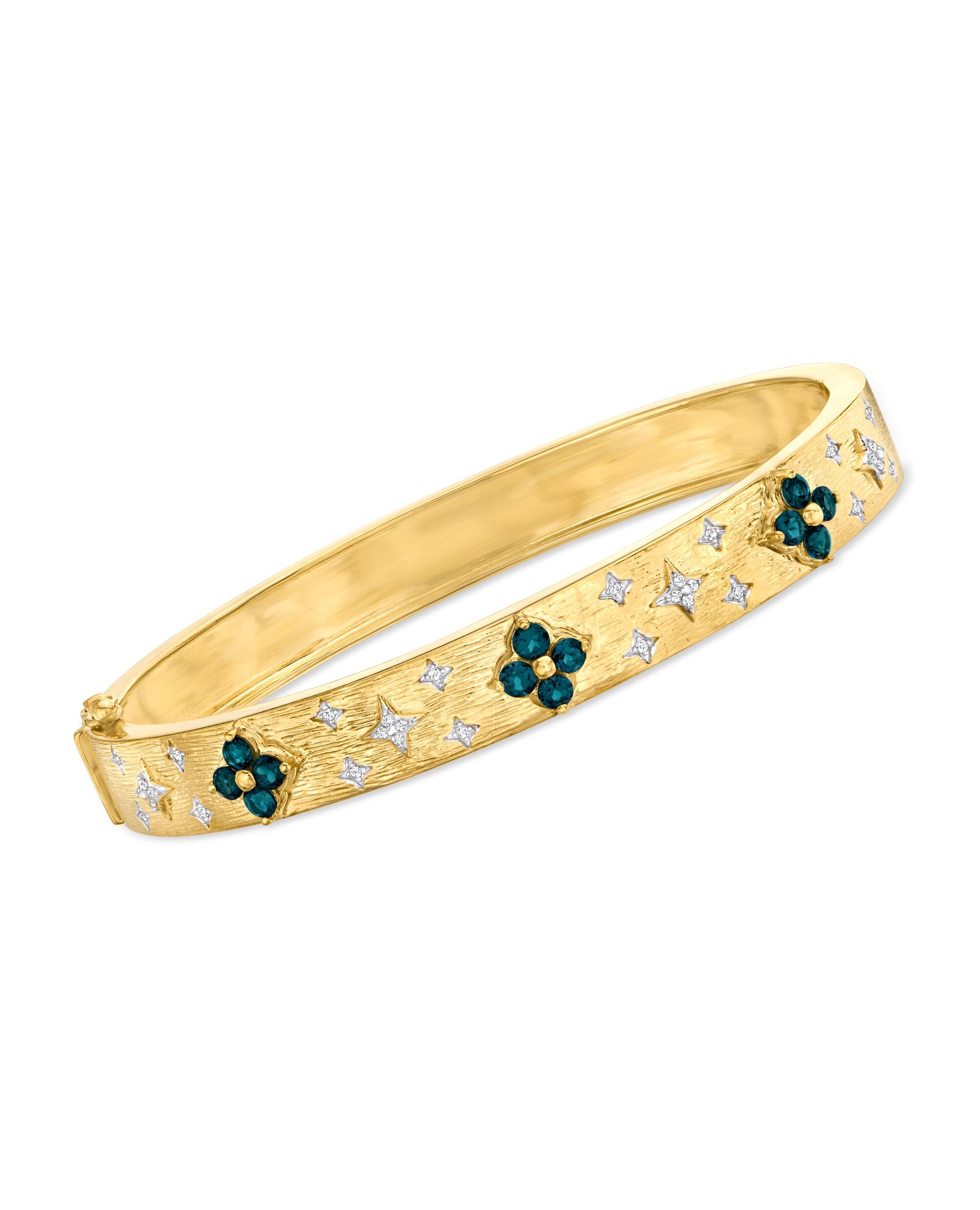 Ross-Simons London Blue Topaz Floral Bangle Bracelet With . Diamonds in 18kt Gold Over Sterling