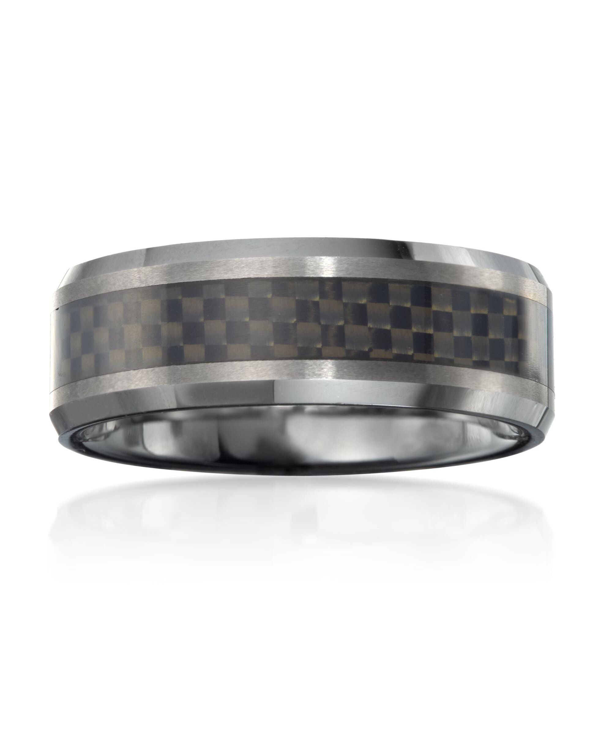 Ross-Simons presents contemporary styles with a timeless appeal. Bold styling takes the fore in this striking 8mm wedding ring featuring a checkerboard carbon fiber inlay and sleek beveled-edge borders. Tungsten carbide wedding ring. Each Ross-Simons item arrives in a fine jewelry presentation box. Shop Ross-Simons jewelry risk-free as all items include a 30-day, 100% money-back guarantee.