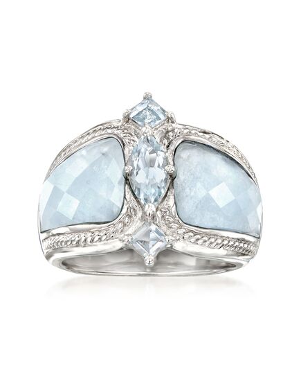 Ross-Simons is the authority on luxury classics. This captivating ring is bound to be your crowning glory. The artisanal, multi-shape design showcases milky aquamarine sides highlighted front and center by a .55 carat aquamarine marquise. .30 ct. t.w. of aquamarine squares add the finishing touch. Aquamarine ring. Each Ross-Simons item arrives in a fine jewelry presentation box. Shop Ross-Simons jewelry risk-free as all items include a 30-day, 100% money-back guarantee.Stone InformationGem Type 1 - AquamarineStone Cut 1 - CheckerboardStone Color 1 - BlueStone Clarity 1 - BlueStone Shape 1 - Special-Cut-ShapeStone Creation Method 1 - NaturalStone Treatment Method 1 - Heat-TreatedStone Weight 1 - 5.00 CaratsNumber Of Stones 1 - 2Gem Type 2 - AquamarineStone Cut 2 - Good-CutStone Color 2 - BlueStone Clarity 2 - BlueStone Shape 2 - Marquise-ShapeStone Creation Method 2 - NaturalStone Treatment Method 2 - Heat-TreatedStone Weight 2 - 0.55 CaratsNumber Of Stones 2 - 1Gem Type 3 - AquamarineStone Cut 3 - Good-CutStone Color 3 - BlueStone Clarity 3 - BlueStone Shape 3 - Square-ShapeStone Creation Method 3 - NaturalStone Treatment Method 3 - Heat-TreatedStone Weight 3 - 0.30 CaratsNumber Of Stones 3 - 2