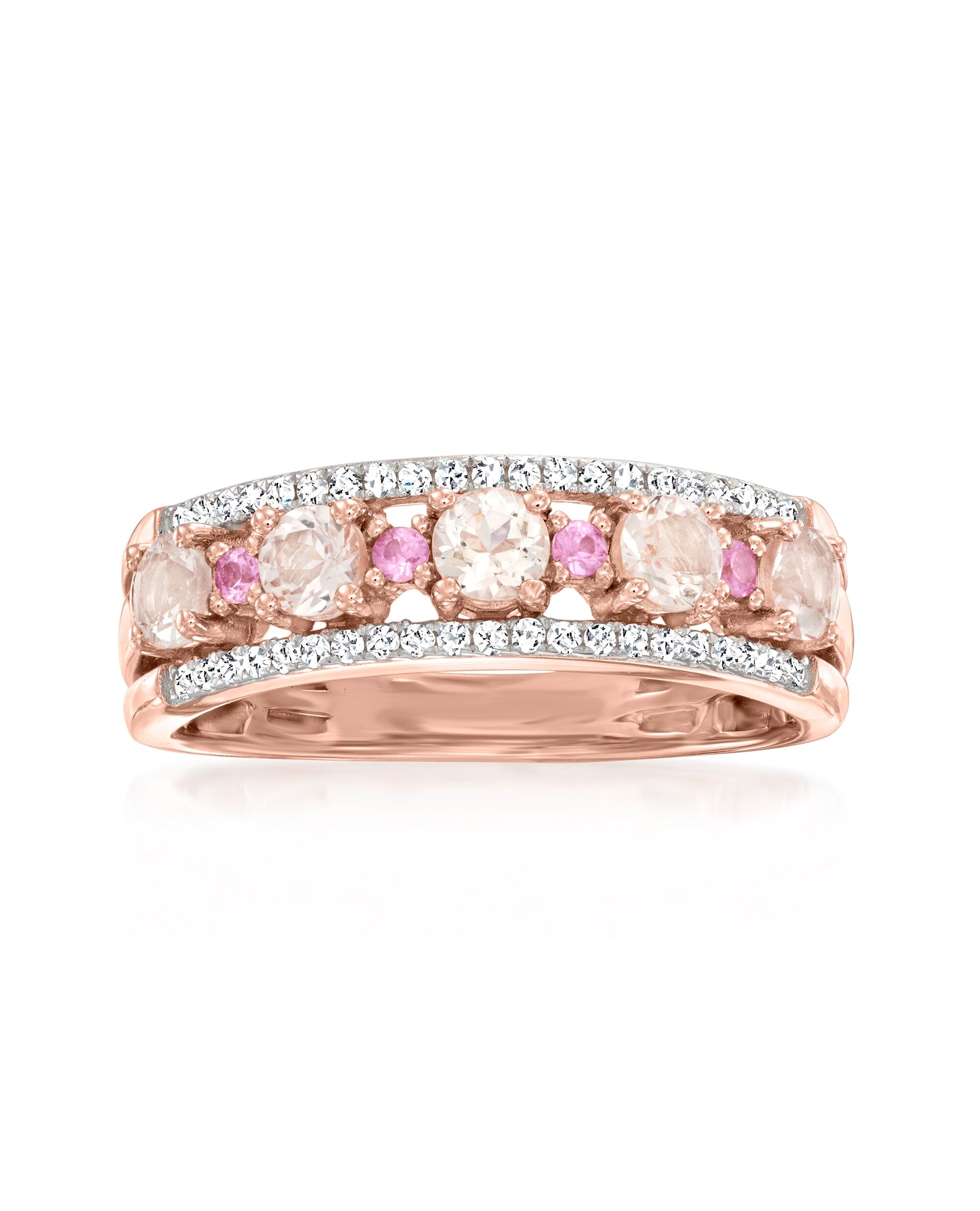 Ross-Simons Morganite Ring With Diamonds and Pink Sapphires in 18kt Rose Gold Over Sterling