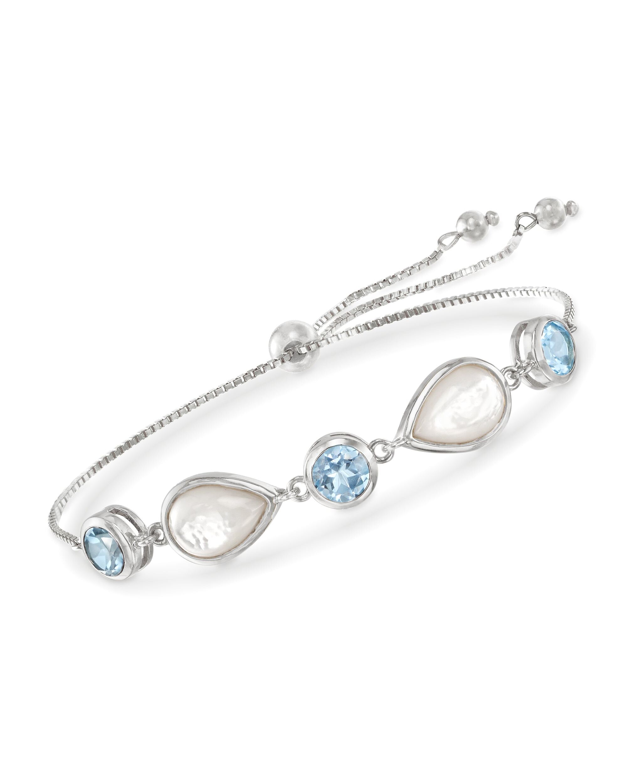 Ross-Simons Mother-Of-Pearl and Blue Topaz Bolo Bracelet in Sterling Silver