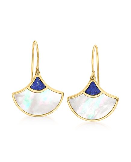 Ross-Simons Mother-Of-Pearl and Lapis Fan Drop Earrings in 18kt Gold Over Sterling