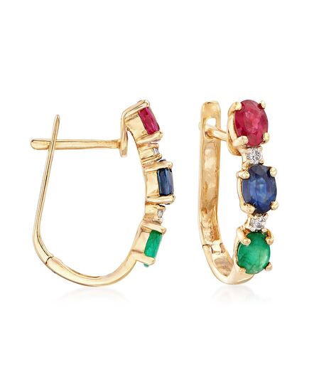 Ross-Simons Multi-Gem Drop Earrings in 14kt Yellow Gold