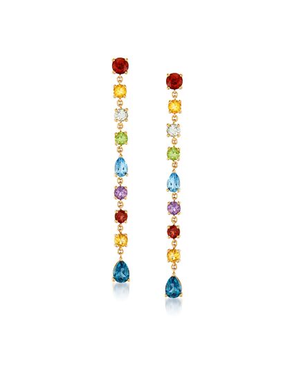 Ross-Simons Multi-Gemstone Linear Drop Earrings in 18kt Gold Over Sterling