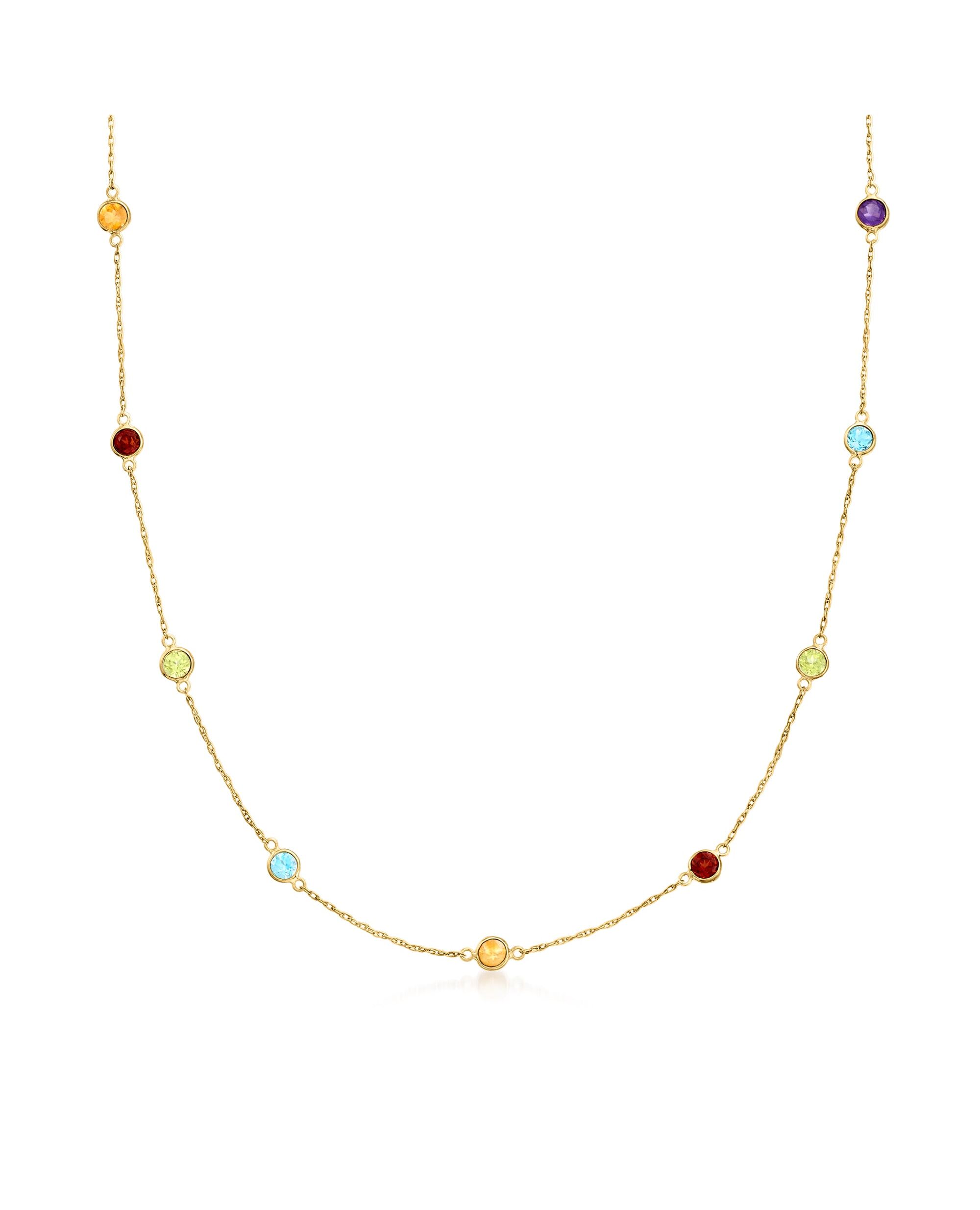Ross-Simons Multi-Gemstone Station Necklace in 14kt Yellow Gold