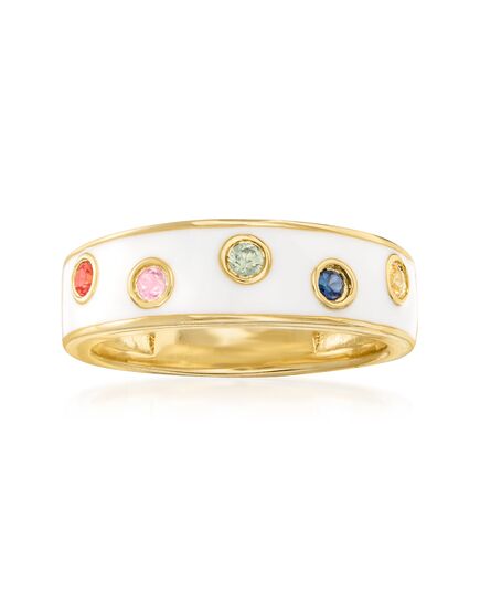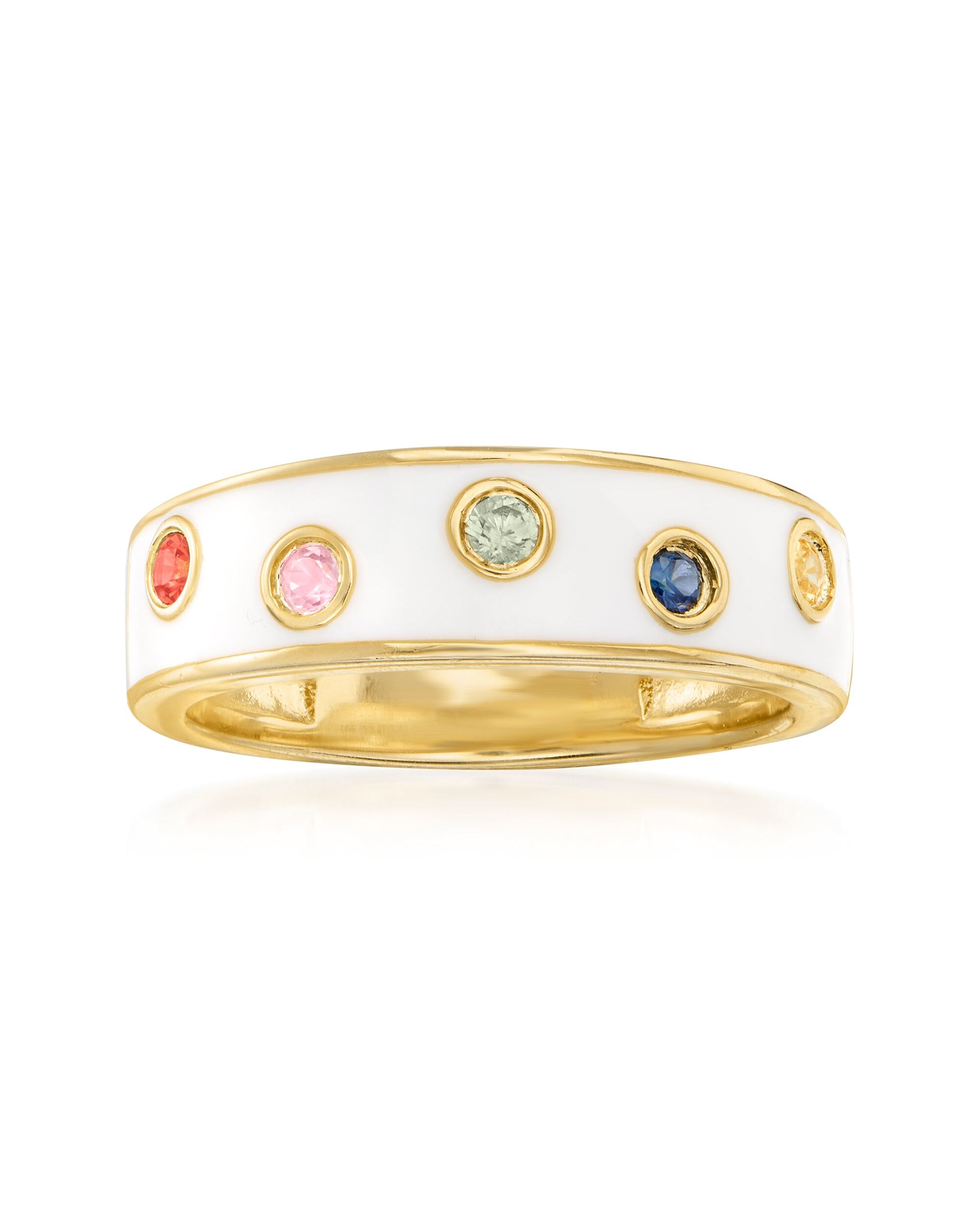 Ross-Simons Multicolored Sapphire and White Enamel Ring in 18kt Gold Over Sterling