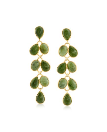 Ross-Simons Nephrite Jade Chandelier Earrings in 18kt Gold Over Sterling