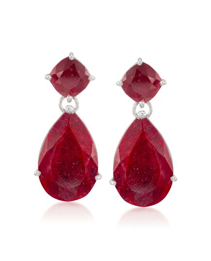 A top-rated jeweler since 1952, Ross-Simons travels the world to find high-quality styles at the best prices. An RS exclusive. These spicy 26.50 ct. t.w. opaque ruby earrings have such personality and passion! Pear-shaped dangles swing like pendulums from square toppers to marvelous effect. Set in sterling silver. Hanging length is 1 1/8". Post/clutch, ruby drop earrings. Each Ross-Simons item arrives in a fine jewelry presentation box. Shop Ross-Simons jewelry risk-free as all items include a 30-day, 100% money-back guarantee.Stone InformationGem Type 1 - RubyStone Cut 1 - Good-CutStone Color 1 - RedStone Clarity 1 - RedStone Shape 1 - Oval-ShapeStone Creation Method 1 - NaturalStone Treatment Method 1 - Heat-TreatedStone Weight 1 - 20.00 CaratsNumber Of Stones 1 - 2Gem Type 2 - RubyStone Cut 2 - Good-CutStone Color 2 - RedStone Clarity 2 - RedStone Shape 2 - Special-Cut-ShapeStone Creation Method 2 - NaturalStone Treatment Method 2 - Heat-TreatedStone Weight 2 - 6.50 CaratsNumber Of Stones 2 - 2