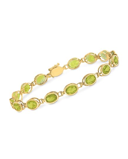 Ross-Simons Oval Bezel-Set Peridot Bracelet in 14kt Yellow Gold