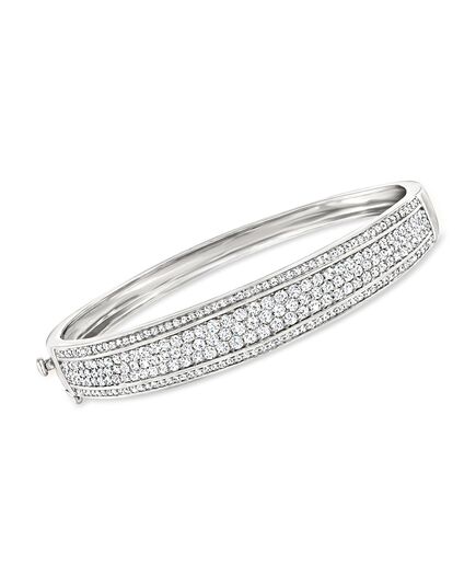Ross-Simons Pave Diamond Bangle Bracelet in Sterling Silver