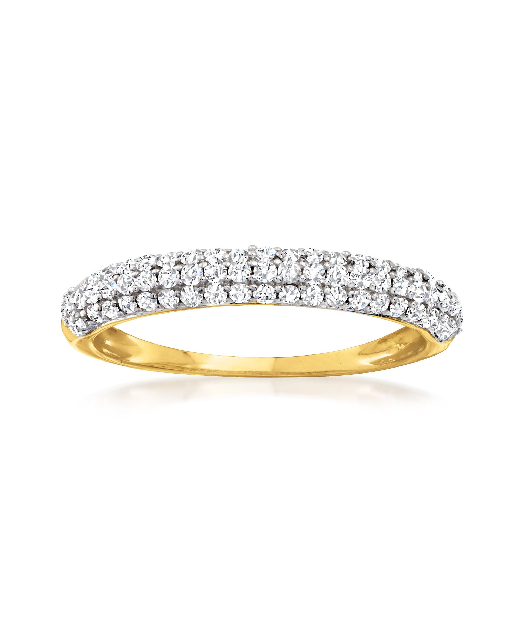 At Ross-Simons, we recognize the style power of versatile classics. Go for the glitter and the glamour. This shimmering ring catches the light from all angles with 0.50 ct. t.w. pave diamonds. Set in polished 14kt yellow gold. 1/8" wide. Pave diamond ring. Each Ross-Simons item arrives in a fine jewelry presentation box. Shop Ross-Simons jewelry risk-free as all items include a 30-day, 100% money-back guarantee.Stone InformationGem Type 1 - DiamondStone Cut 1 - Good-CutStone Color 1 - I-JStone Clarity 1 - I2Stone Shape 1 - Round-ShapeStone Creation Method 1 - NaturalStone Treatment Method 1 - Not-TreatedStone Weight 1 - 0.50 CaratsNumber Of Stones 1 - 68