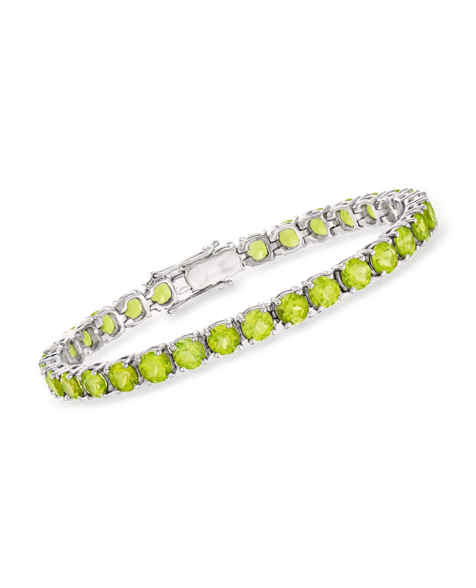 Established in 1952, Ross-Simons presents contemporary styles with a timeless appeal. This tennis bracelet will encircle your wrist in the lush and lively green of peridot rounds totaling 16.00 carats. And imagine how heavenly it will look with a peridot pendant or tennis necklace! Double latch safety. Box clasp, peridot tennis bracelet. Each Ross-Simons item arrives in a fine jewelry presentation box. Shop Ross-Simons jewelry risk-free as all items include a 30-day, 100% money-back guarantee.Stone InformationGem Type 1 - PeridotStone Cut 1 - Good-CutStone Color 1 - GreenStone Clarity 1 - GreenStone Shape 1 - Round-ShapeStone Creation Method 1 - NaturalStone Treatment Method 1 - Not-TreatedStone Weight 1 - 16.00-20.00 CaratsNumber Of Stones 1 - 32-39