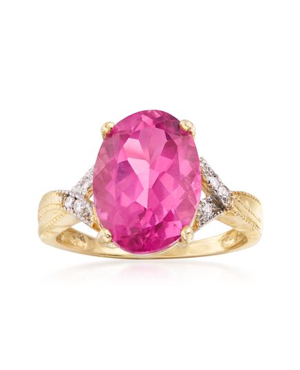Ross-Simons Pink Topaz Ring With Diamond Accents in 14kt Yellow Gold