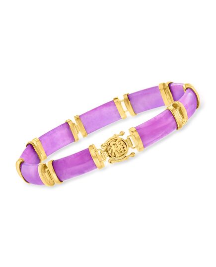 Ross-Simons Purple Jade Chinese Symbol Bracelet in 18kt Gold Over Sterling