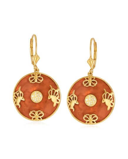 Ross-Simons Red Jade "Good Fortune" Butterfly Drop Earrings in 18kt Gold Over Sterling