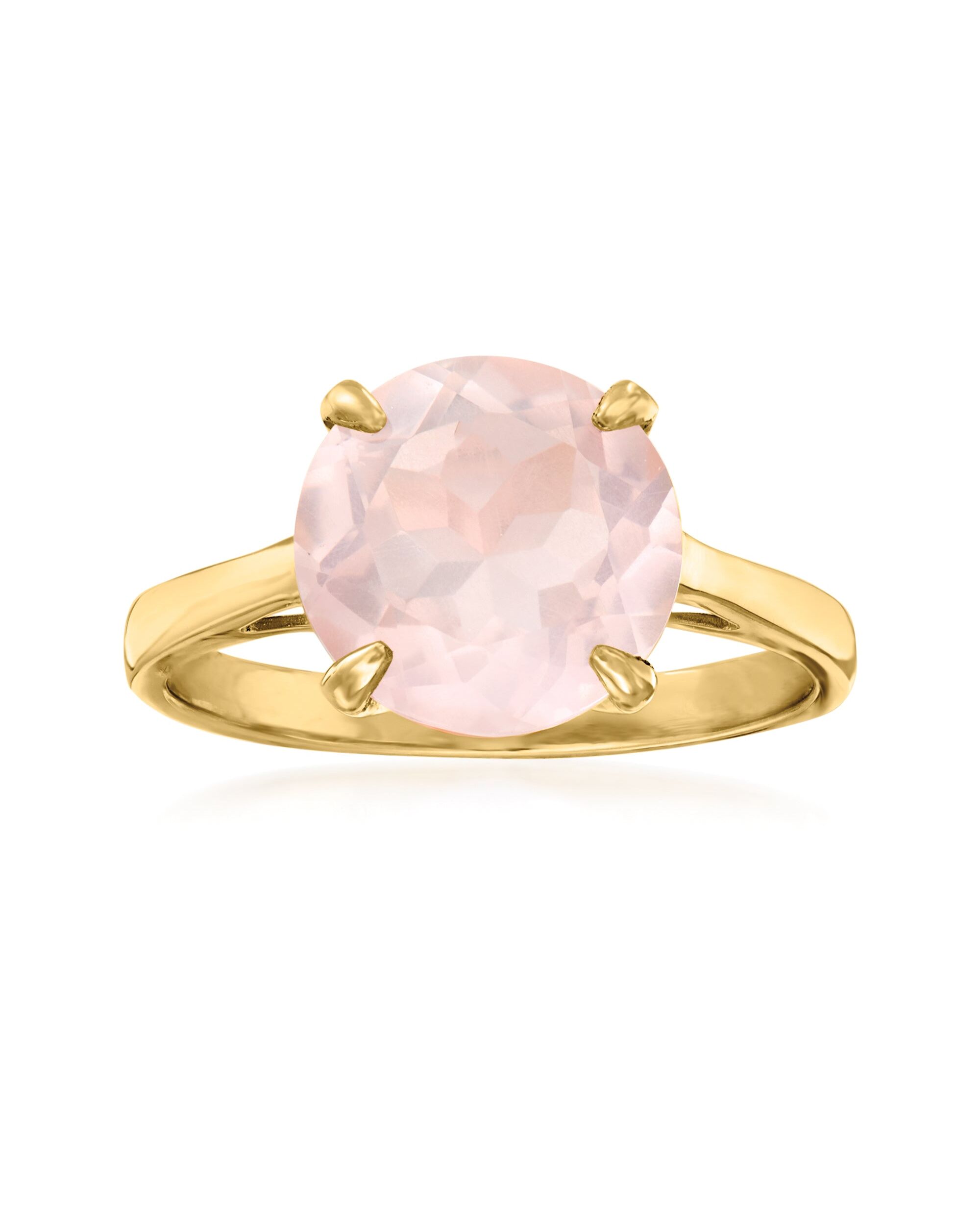 Developing fresh ways to wear timeless looks, Ross-Simons masters the classics. Plunge into the pretty pink hue of this heavenly gemstone ring! A 3.20 carat round rose quartz is presented in a classic four-prong setting on a polished 14kt yellow gold band. 3/8" wide. Rose quartz ring. Each Ross-Simons item arrives in a fine jewelry presentation box. Shop Ross-Simons jewelry risk-free as all items include a 30-day, 100% money-back guarantee.Stone InformationGem Type 1 - QuartzStone Cut 1 - Good-CutStone Color 1 - PinkStone Clarity 1 - PinkStone Shape 1 - Round-ShapeStone Creation Method 1 - NaturalStone Treatment Method 1 - Heat-TreatedStone Weight 1 - 3.20 CaratsNumber Of Stones 1 - 1