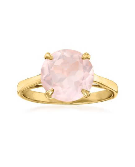 Developing fresh ways to wear timeless looks, Ross-Simons masters the classics. Plunge into the pretty pink hue of this heavenly gemstone ring! A 3.20 carat round rose quartz is presented in a classic four-prong setting on a polished 14kt yellow gold band. 3/8" wide. Rose quartz ring. Each Ross-Simons item arrives in a fine jewelry presentation box. Shop Ross-Simons jewelry risk-free as all items include a 30-day, 100% money-back guarantee.Stone InformationGem Type 1 - QuartzStone Cut 1 - Good-CutStone Color 1 - PinkStone Clarity 1 - PinkStone Shape 1 - Round-ShapeStone Creation Method 1 - NaturalStone Treatment Method 1 - Heat-TreatedStone Weight 1 - 3.20 CaratsNumber Of Stones 1 - 1