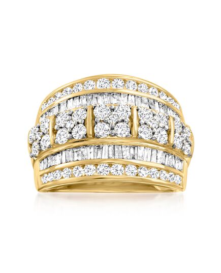 Ross-Simons Round and Baguette Diamond Multi-Row Ring in 14kt Yellow Gold