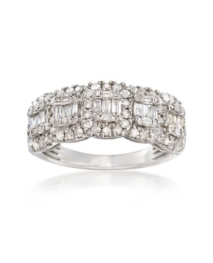 Ross-Simons Round and Baguette Diamond Ring in Sterling Silver