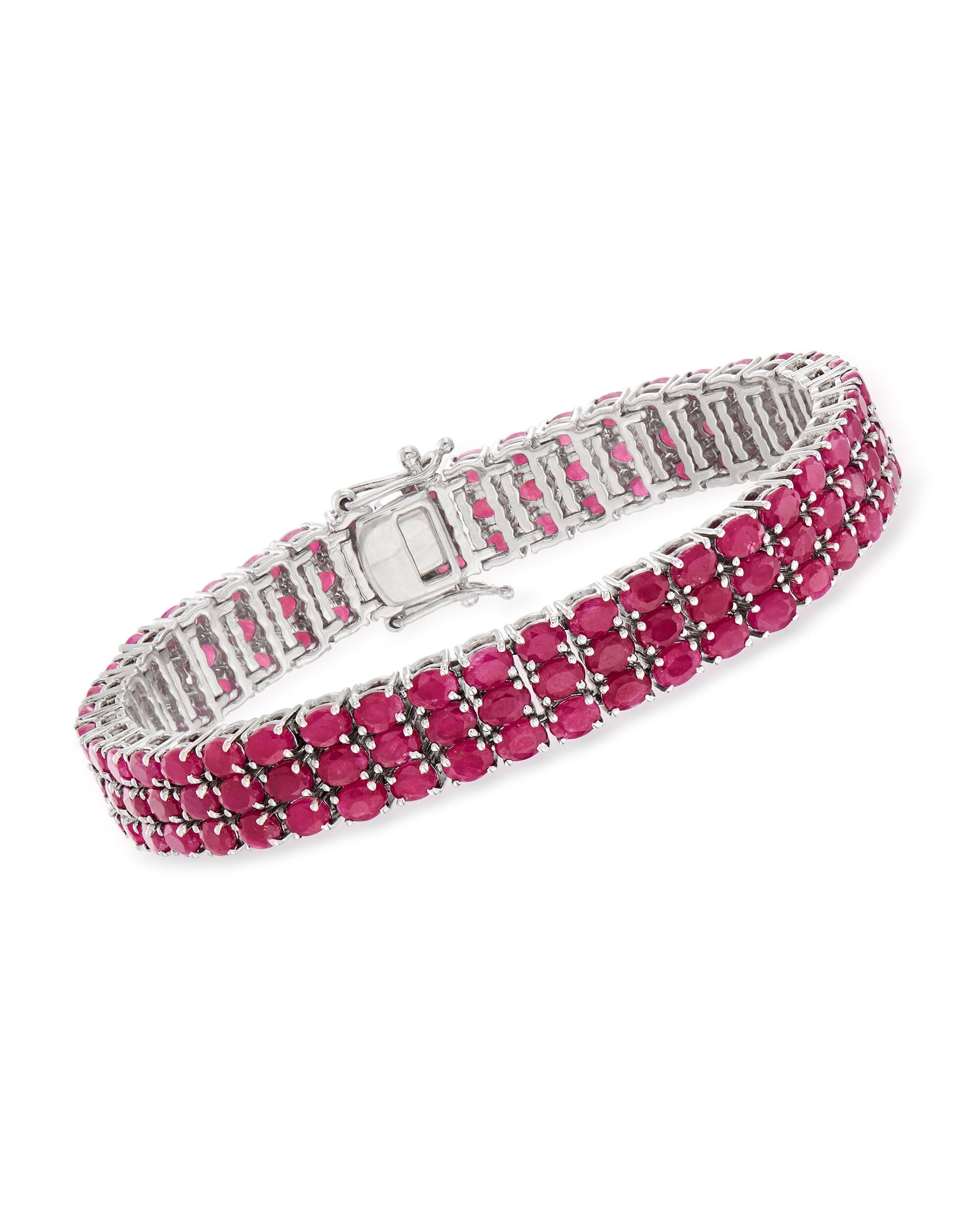 Ross-Simons Ruby 3-Row Tennis Bracelet in Sterling Silver