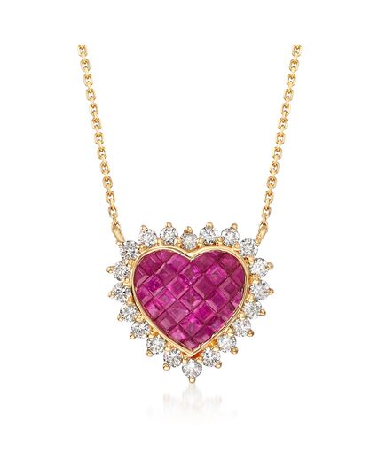 Ross-Simons Ruby and . Diamond Heart Necklace in 18kt Yellow Gold