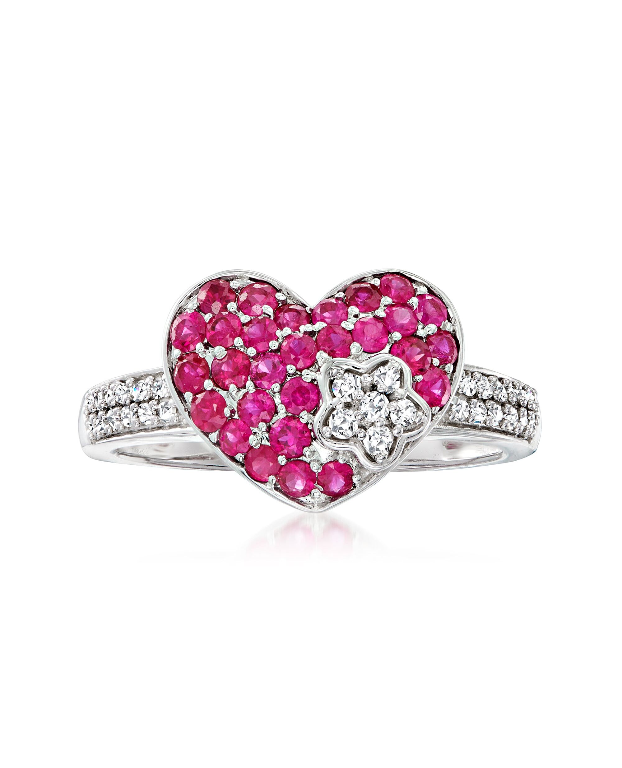 Ross-Simons Ruby and . Diamond Heart Ring in 14kt White Gold