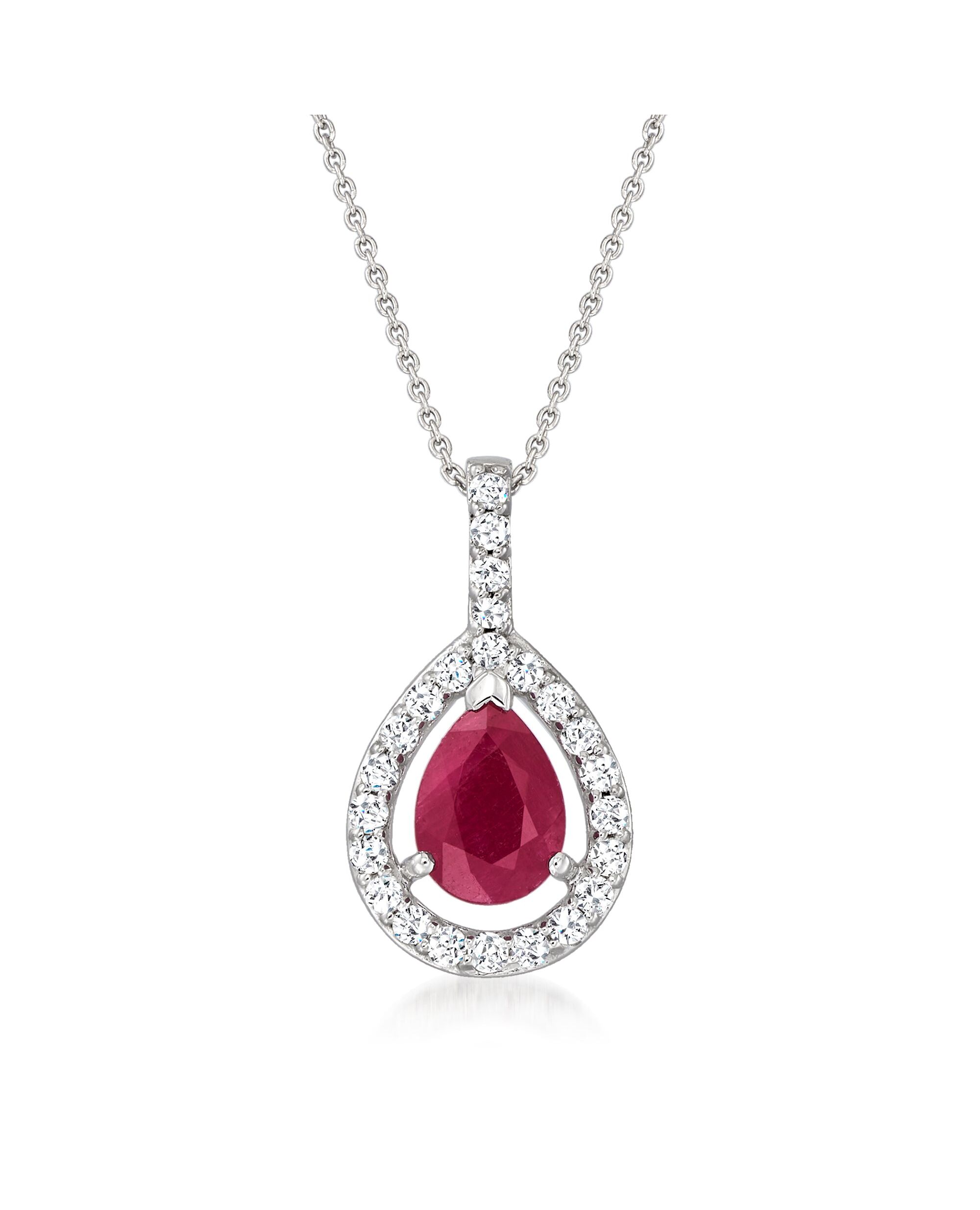 Ross-Simons Ruby and . Diamond Pendant Necklace in 14kt White Gold