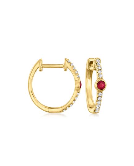 Ross-Simons Ruby and Diamond-Accented Huggie Hoop Earrings in 14kt Yellow Gold