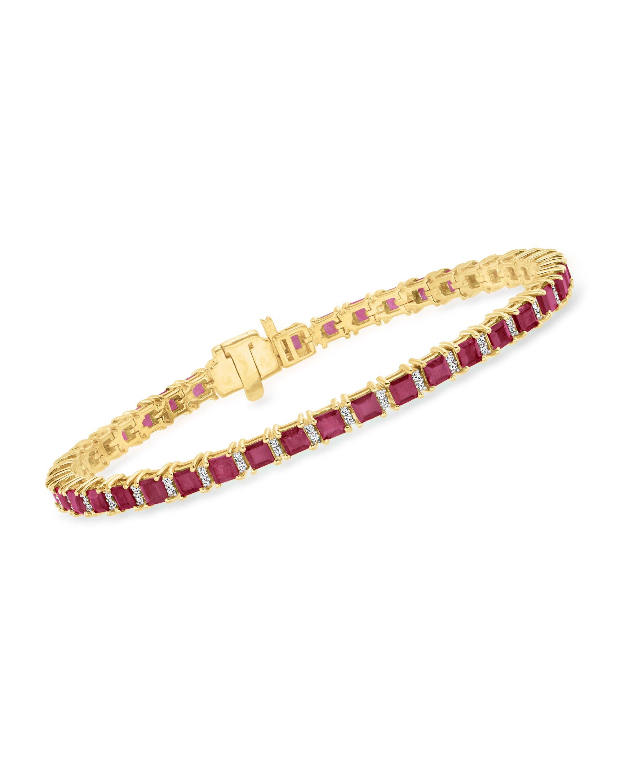 Ross-Simons Ruby Tennis Bracelet With . Diamonds in 18kt Gold Over Sterling