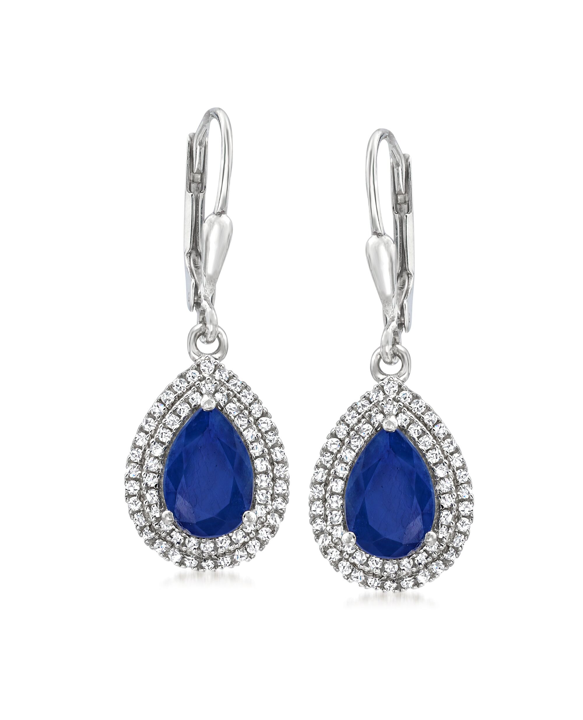 Ross-Simons Sapphire and . Diamond Pear-Shaped Drop Earrings in 14kt White Gold