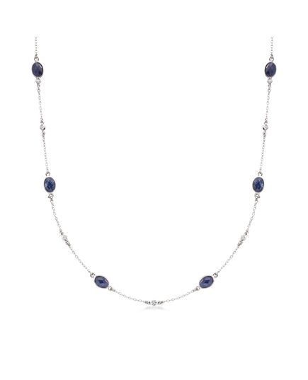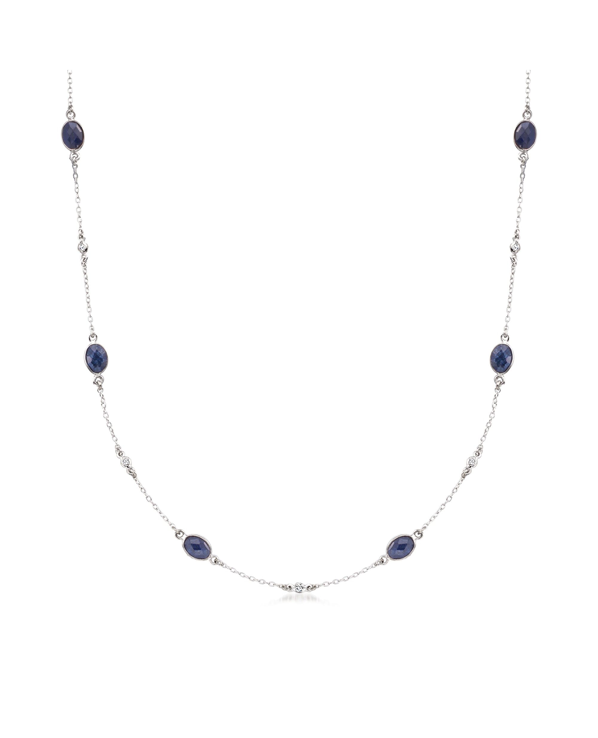 Ross-Simons is the authority on fashionable must-haves. We are pleased to present our fabulous necklace at a fabulous price! Shimmering 7.20 ct. t.w. oval sapphires and .25 ct. t.w. diamonds alternate on a sterling silver chain to create a necklace that gives a fresh new angle to any ensemble. Looks great on its own or when layered with others to get the latest global look. Lobster clasp, diamond and blue sapphire station necklace. Each Ross-Simons item arrives in a fine jewelry presentation box. Shop Ross-Simons jewelry risk-free as all items include a 30-day, 100% money-back guarantee.Stone InformationGem Type 1 - SapphireStone Cut 1 - CheckerboardStone Color 1 - BlueStone Clarity 1 - BlueStone Shape 1 - Oval-ShapeStone Creation Method 1 - NaturalStone Treatment Method 1 - HeatedStone Weight 1 - 7.20-19.00 CaratsNumber Of Stones 1 - 6-16Gem Type 2 - DiamondStone Cut 2 - Good-CutStone Color 2 - HStone Clarity 2 - I2Stone Shape 2 - Round-ShapeStone Creation Method 2 - NaturalStone Treatment Method 2 - Not-TreatedStone Weight 2 - 0.25-0.49 CaratsNumber Of Stones 2 - 7-14