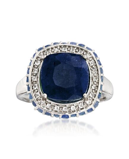 Established in 1952, Ross-Simons brings jewelry classics into the modern era. Sitting at the center of the dazzling design, a deep blue 5.20 carat cushion-cut sapphire is double-framed by .10 ct. t.w. white topaz and .50 ct. t.w. sapphires. This breathtaking ring makes a bright statement in polished sterling silver. 5/8" wide. White topaz and sapphire ring. Each Ross-Simons item arrives in a fine jewelry presentation box. Shop Ross-Simons jewelry risk-free as all items include a 30-day, 100% money-back guarantee.Stone InformationGem Type 1 - SapphireStone Cut 1 - Good-CutStone Color 1 - BlueStone Clarity 1 - BlueStone Shape 1 - Square-ShapeStone Creation Method 1 - NaturalStone Treatment Method 1 - HeatedStone Weight 1 - 5.20 CaratsNumber Of Stones 1 - 1Gem Type 2 - SapphireStone Cut 2 - Good-CutStone Color 2 - BlueStone Clarity 2 - BlueStone Shape 2 - Round-ShapeStone Creation Method 2 - NaturalStone Treatment Method 2 - HeatedStone Weight 2 - 0.50 CaratsNumber Of Stones 2 - 28Gem Type 3 - TopazStone Cut 3 - Good-CutStone Color 3 - WhiteStone Clarity 3 - WhiteStone Shape 3 - Round-ShapeStone Creation Method 3 - NaturalStone Treatment Method 3 - Heat-Treated,IrradiatedStone Weight 3 - 0.10 CaratsNumber Of Stones 3 - 24
